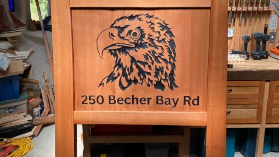 'Unfurl' #2- The second tallest of the 'Unfurl' sculptures measures 39" tall. Carved from salvaged red cedar and mounted on a sand stone base, 9"x8". Currently for sale, please inquire for details.